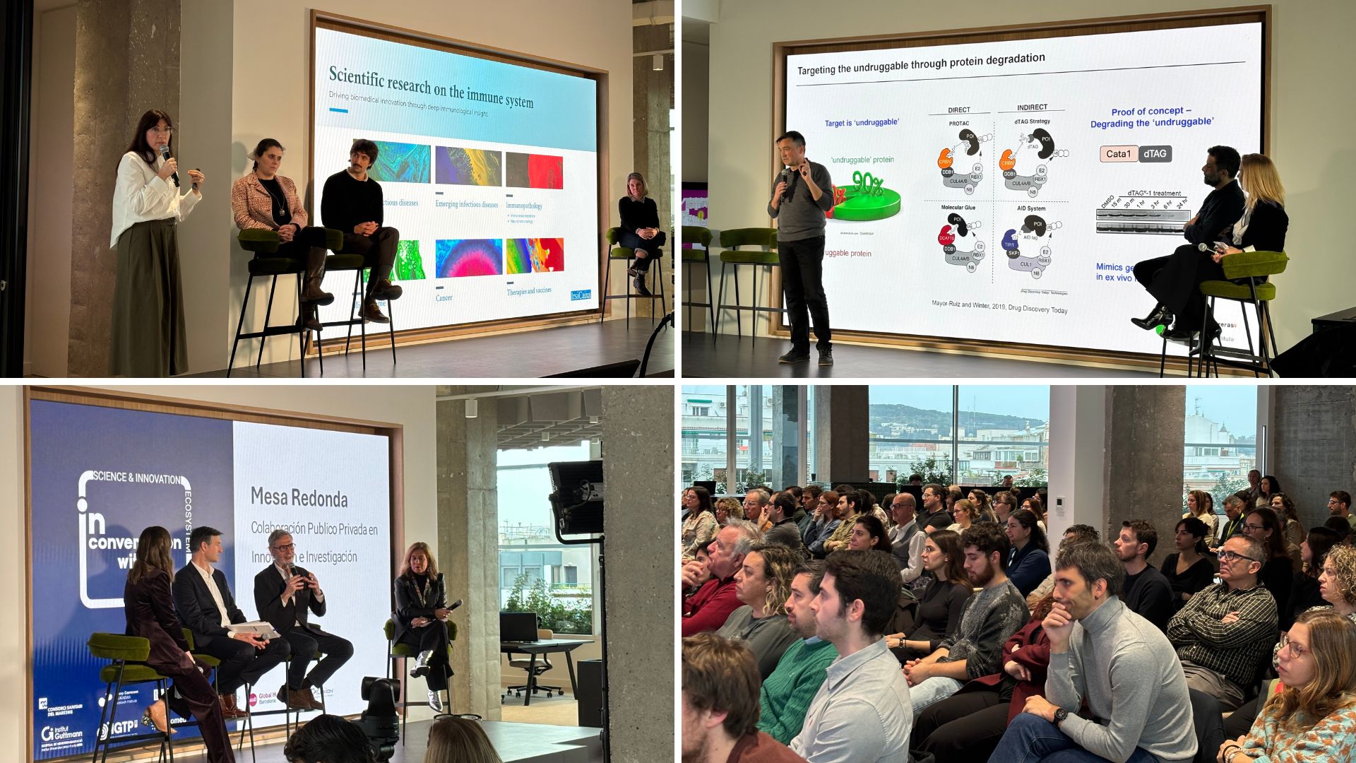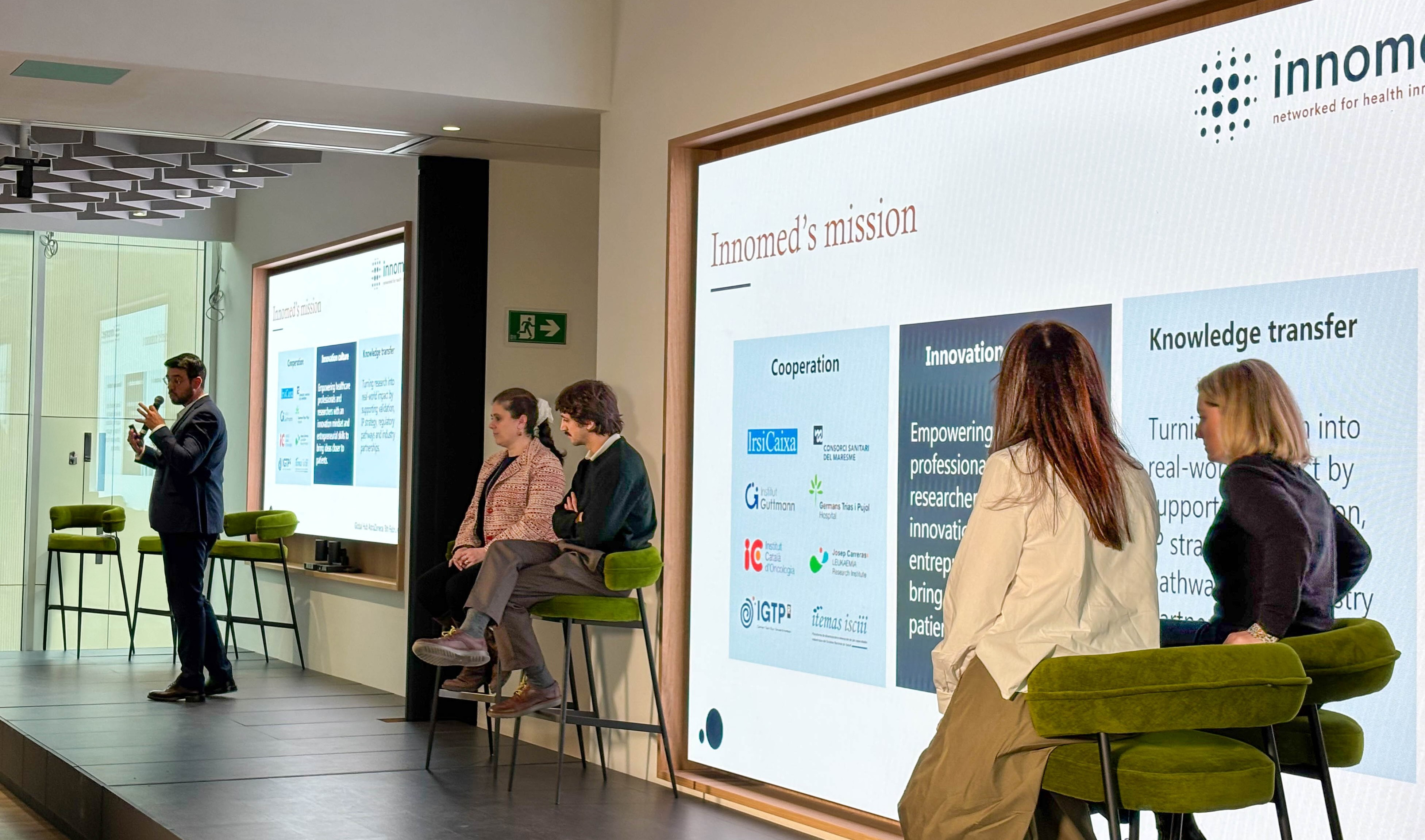El programa va incloure també una conversa oberta sota el títol "Ecosistema Can Ruti: ciència i innovació que connecten", on professionals de les diferents institucions Innomed han compartit experiències i reptes comuns en matèria de recerca i innovació en salut. Entre els ponents convidats, representants dels projectes estratègics de l'IGTP, el Centre de Medicina Comparativa i Bioimatge de Catalunya (CMCiB) i GCATlGenomes for Life, van poder mostrar les seves capacitats. A continuació, una taula rodona centrada en la col·laboració publicoprivada va permetre debatre sobre nous models de cooperació entre centres de recerca, hospitals i indústria.