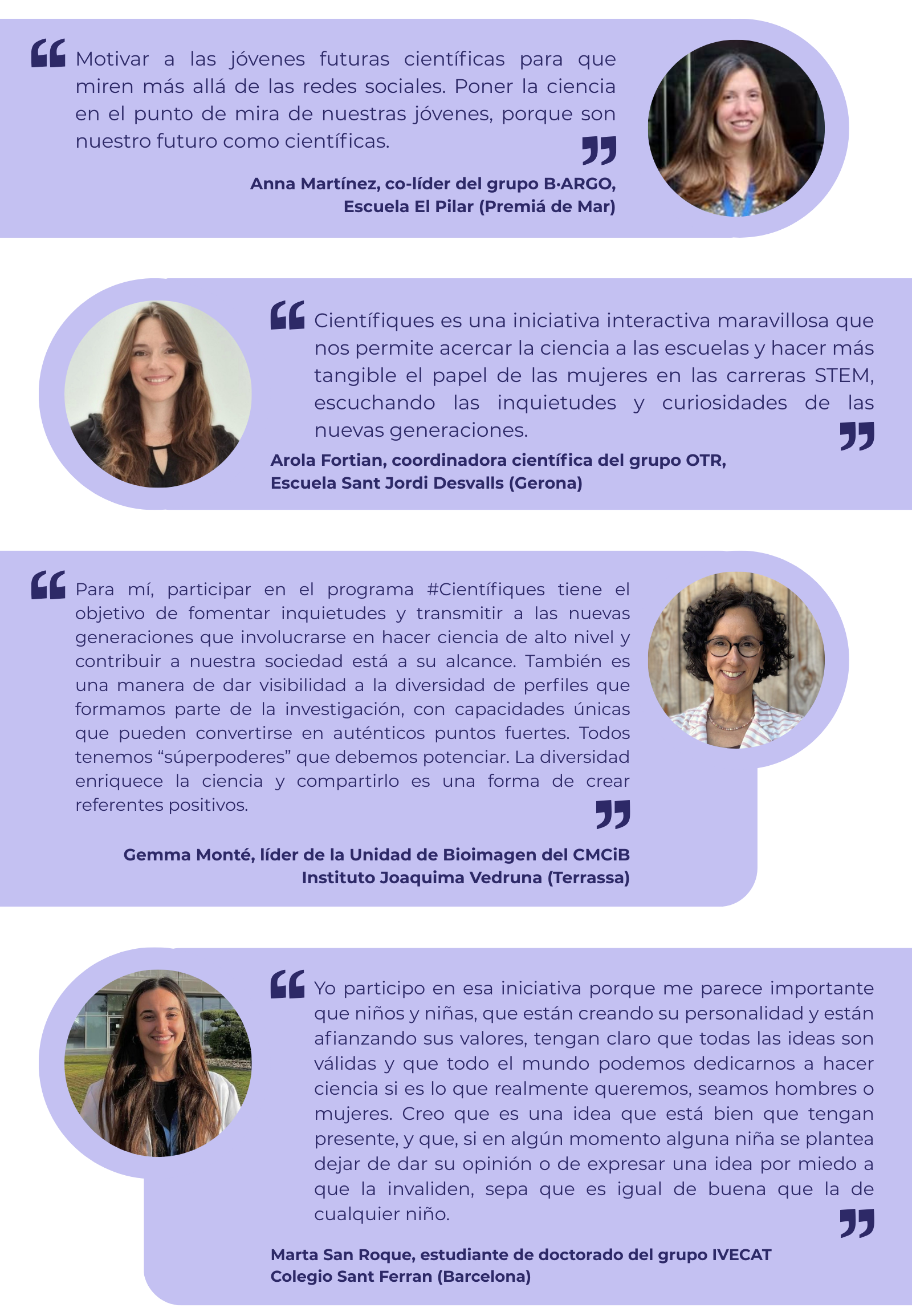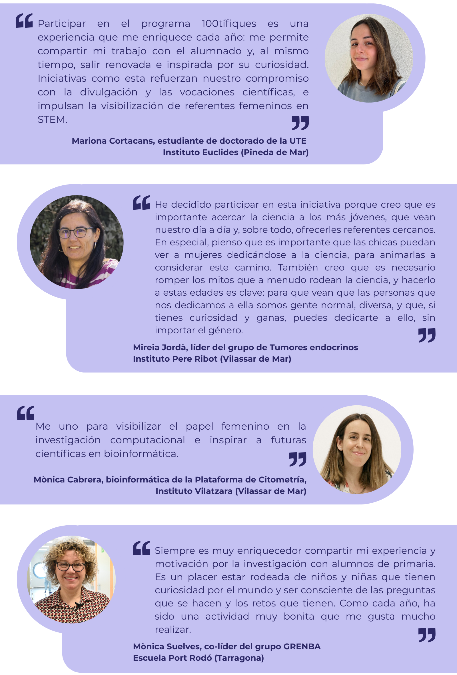 Este año han participado 12 investigadoras del IGTP, ofreciendo charlas presenciales y virtuales en todo el territorio durante el mes de febrero. Ellas mismas explican qué las impulsa a formar parte: