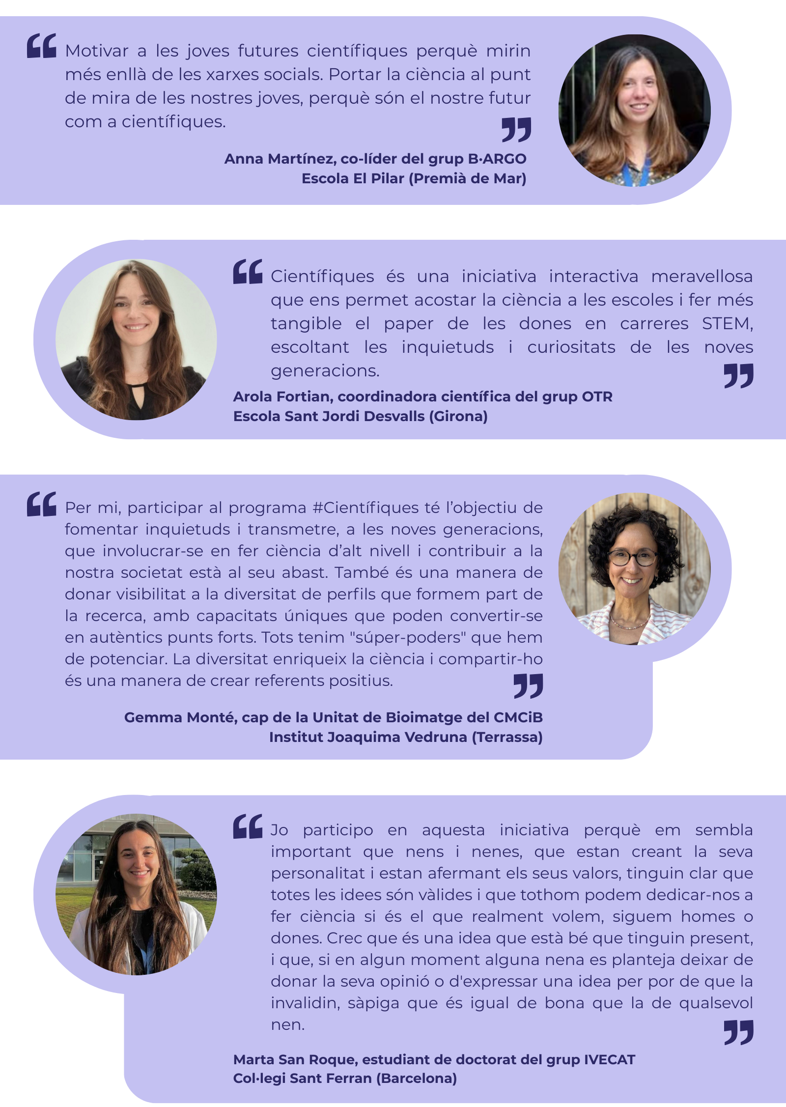 Aquesta vuitena edició ha tornat a posar en valor la importància d'iniciatives com #científiques, que impulsen nous referents femenins i apropen la ciència a les futures generacions gràcies a una coordinació estreta entre escoles i investigadores. Representa un apropament essencial a les primeres etapes educatives per transmetre que la ciència és per a tothom, amb l'objectiu d'avançar cap a una recerca més diversa, inclusiva i lliure de bretxes de genère.