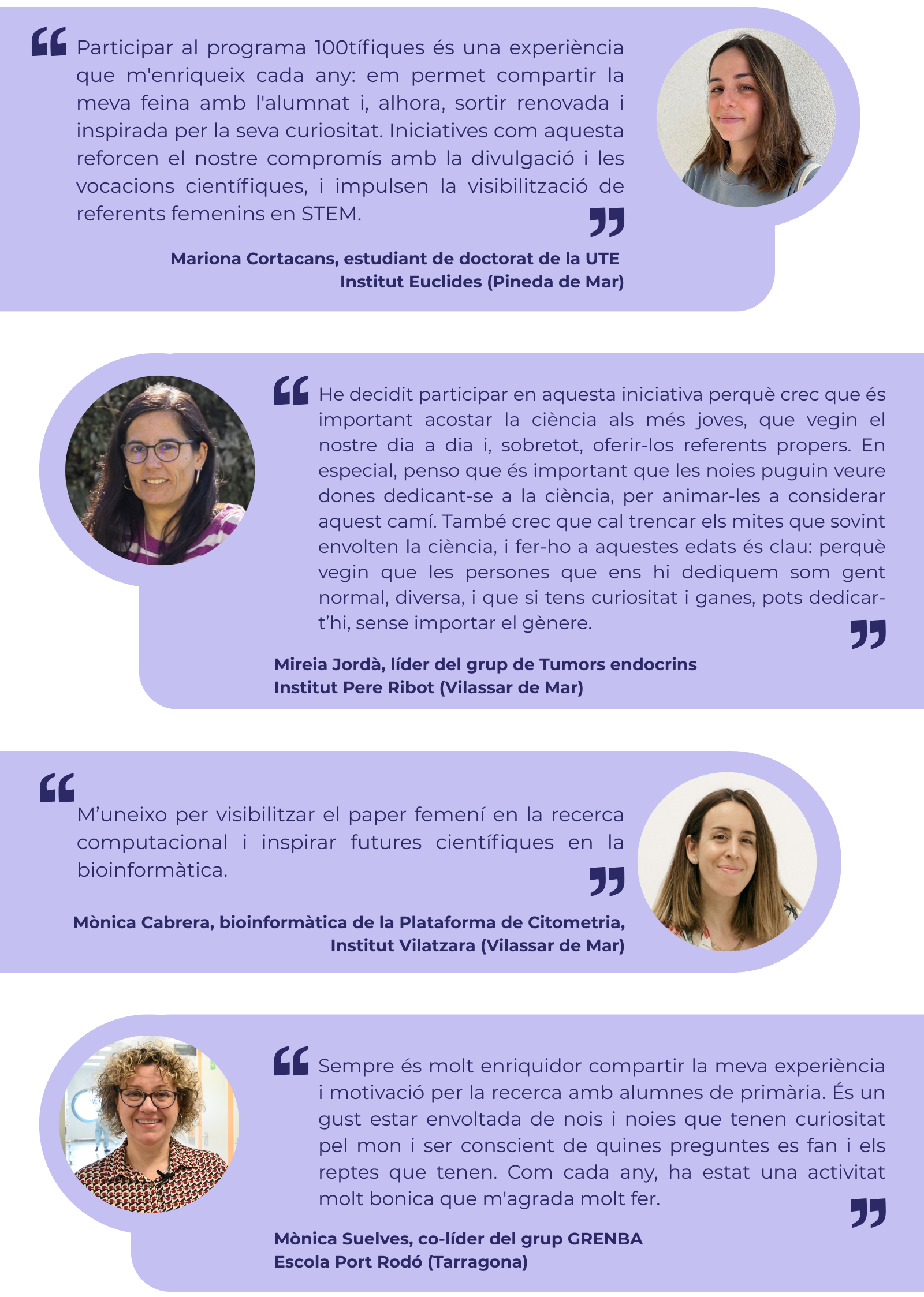 Aquest any han participat 12 investigadores de l'IGTP, oferint xerrades presencials i virtuals arreu del territori durant el mes de febrer. Elles mateixes expliquen què les impulsa a formar-ne part:
