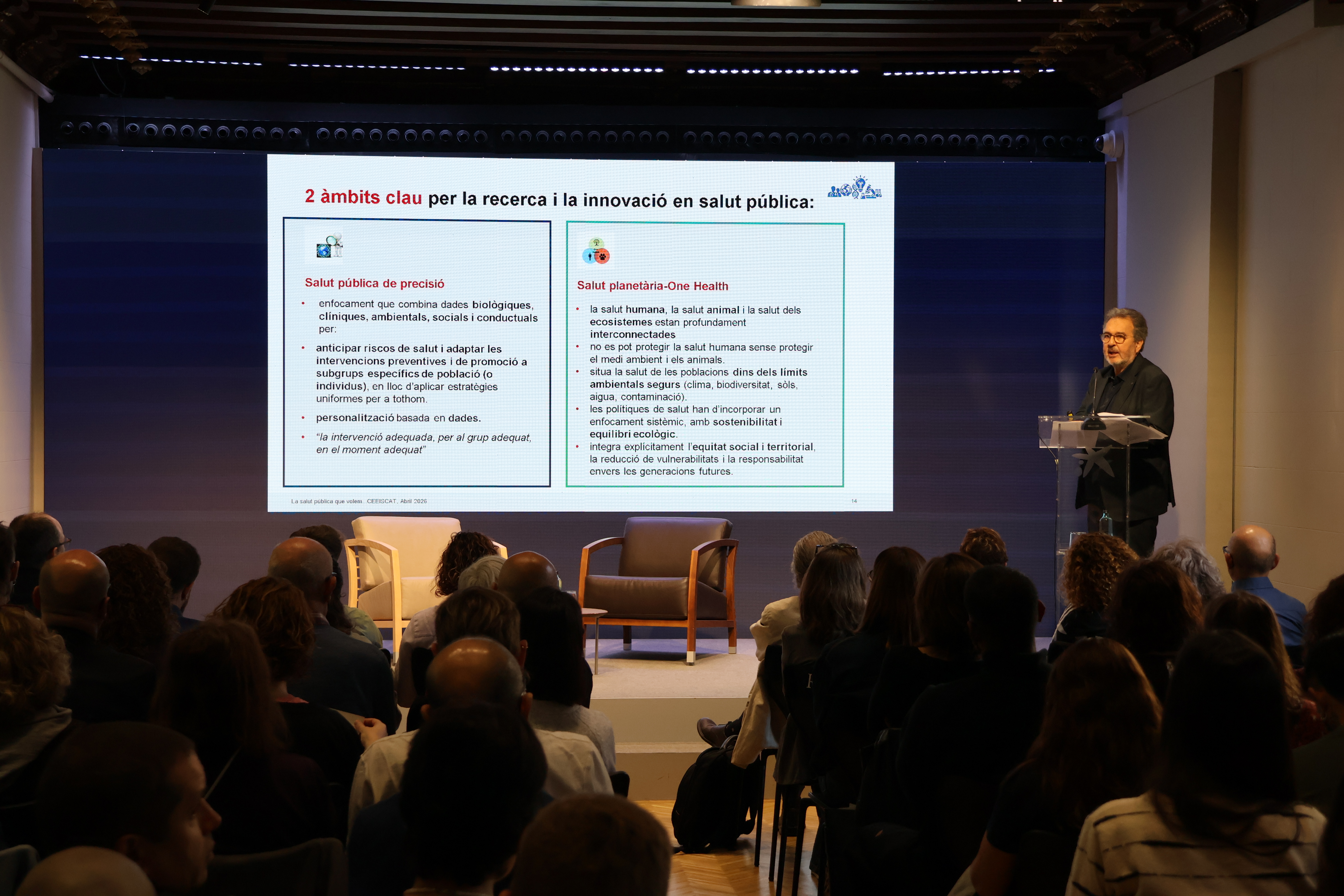 La ponencia invitada, "La salud pública que queremos: horizontes para la investigación y la innovación", fue impartida por Antoni Plasència, director general de Investigación e Innovación del Departamento de Salud, presentado por Jordi Casabona, consultor sénior del CEEISCAT.