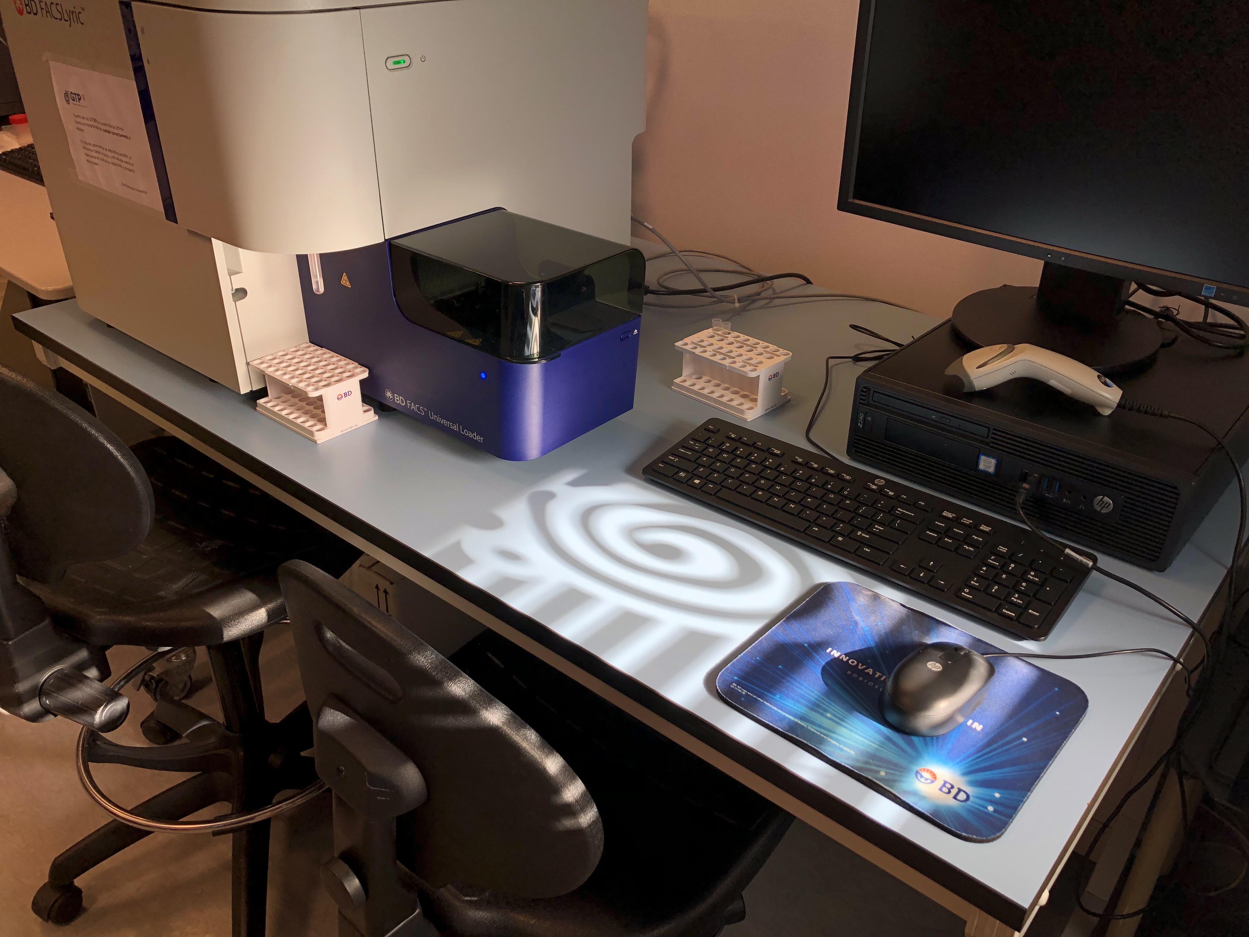 FlowJo, BD FACSDiva instalado en ordenador Apple iMac Intel i7 16 GB RAM con sistemas operativos MAC OSX y Windows (XP y 7). Plataforma de análisis en Windows10 con FlowJo, SpectroFlo y OMIQ.